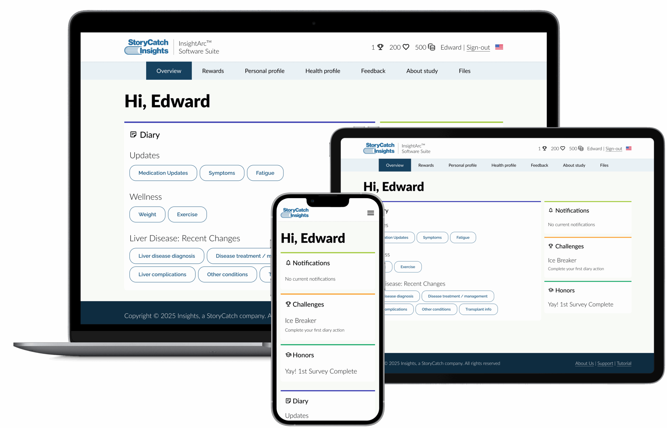 StoryCatch Insights is uniquely positioned to guide observational research by creating a longitudinal record that brings in the patient voice and integrates key elements from any source, including: